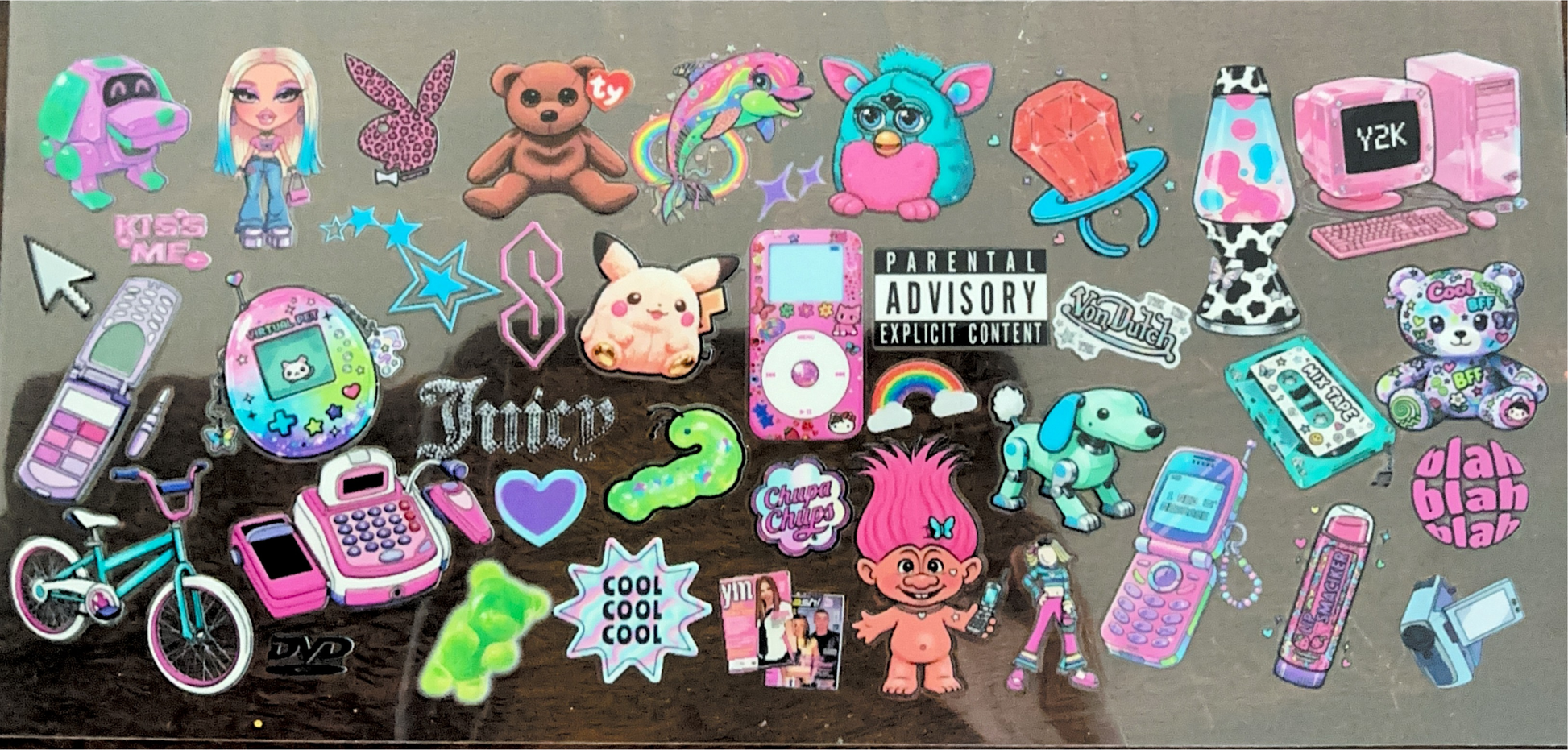 Early 2000s Nostalgia Wrap Transport your drinkware back to the iconic era of low-rise jeans, butterfly clips, and bold graphic aesthetics. This wrap captures the unmistakable visual language of the 2000s with vibrant colours, playful motifs, and that signature retro charm that defined a generation. Perfect for those who lived through the decade or appreciate its distinctive design sensibility, this wrap adds authentic period character to your custom tumblers and drinkware collection. IMPORTANT: WRAPS ARE NOT SOLD INDIVIDUALLY. THIS PRODUCT IS ONLY AVAILABLE WHEN PURCHASED WITH CUSTOM TUMBLERS AND DRINKWARE. WRAPS CANNOT BE PURCHASED SEPARATELY OR WITHOUT CUSTOM DRINKWARE.