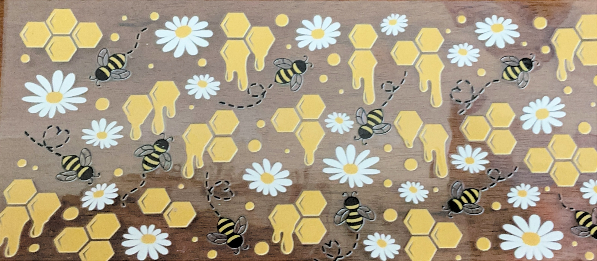 Honey Comb Bees Wrap This intricate wrap design features a detailed honeycomb pattern interwoven with charming bee illustrations, creating a nature-inspired aesthetic perfect for custom tumblers and drinkware. The design celebrates the beauty of pollinator ecosystems while adding visual interest to your beverage containers. Ideal for those who appreciate wildlife-themed artwork and botanical elements in their everyday items. IMPORTANT: WRAPS ARE NOT SOLD INDIVIDUALLY. THIS PRODUCT IS ONLY AVAILABLE WHEN PURCHASED WITH CUSTOM TUMBLERS AND DRINKWARE. WRAPS CANNOT BE PURCHASED SEPARATELY OR WITHOUT CUSTOM DRINKWARE.
