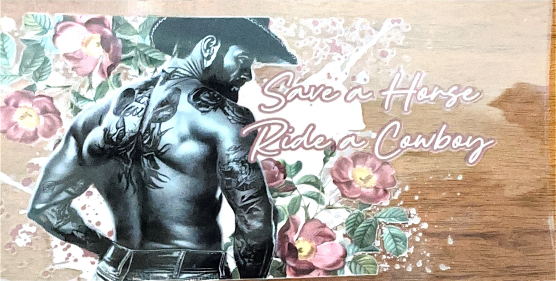 Save A Horse Ride A Cowboy wrap featuring bold, western-inspired typography and classic cowboy aesthetics. This design brings authentic ranch viability to your custom drinkware collection, perfect for those who appreciate timeless country culture and statement-making beverage vessels. The wrap applies seamlessly to your chosen tumbler or drinkware, creating a cohesive look that stands out. Ideal for gifts, personal use, or building a coordinated collection that reflects your western lifestyle. IMPORTANT: WRAPS ARE NOT SOLD INDIVIDUALLY. THIS PRODUCT IS ONLY AVAILABLE WHEN PURCHASED WITH CUSTOM TUMBLERS AND DRINKWARE. WRAPS CANNOT BE PURCHASED SEPARATELY OR WITHOUT CUSTOM DRINKWARE.